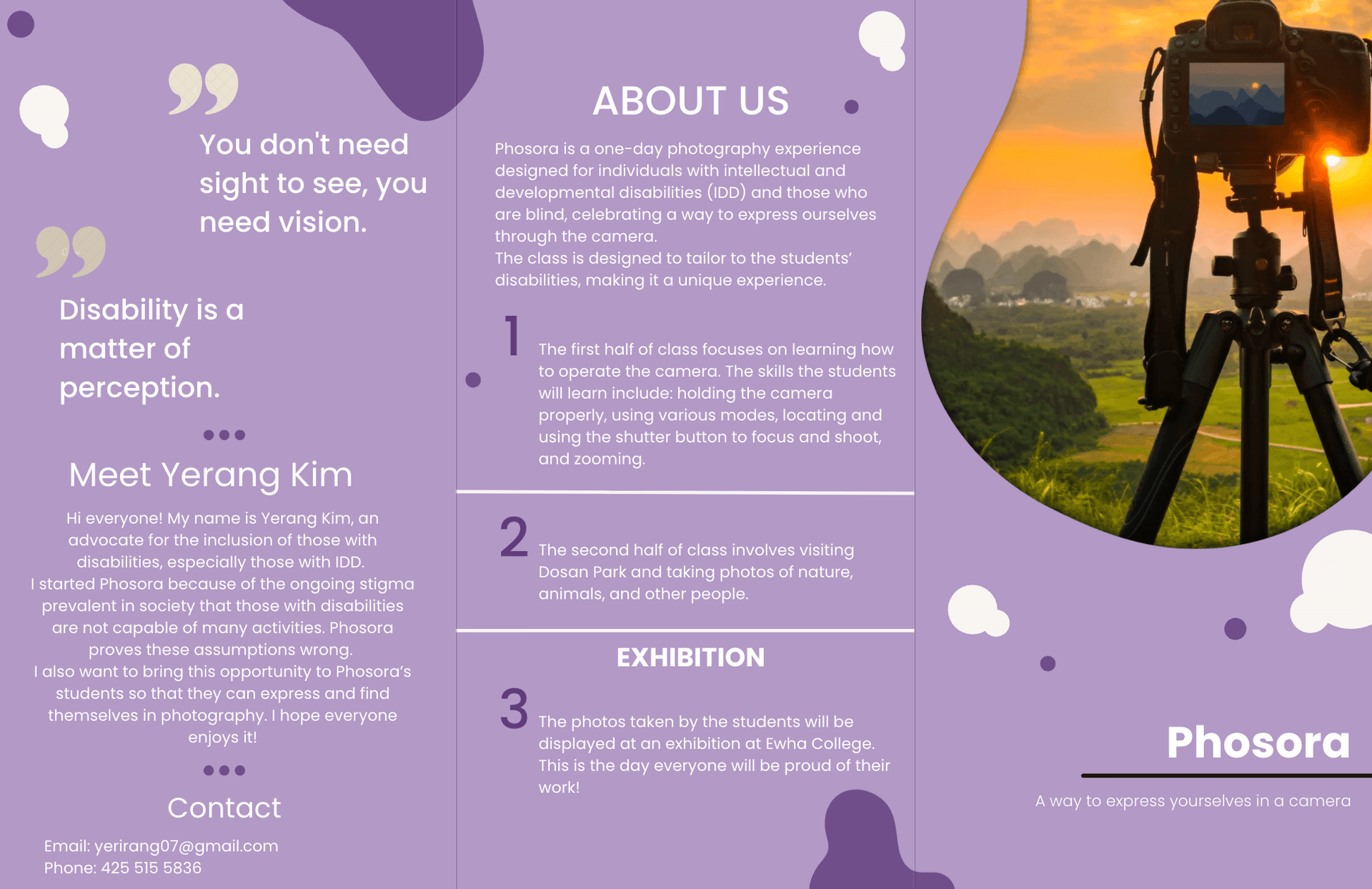 Phosora is a photography class for those with intellectual and developmental disabilities (IDD) or visual impairments The Inconvenient Convenience Store is a disability simulation pop-up.